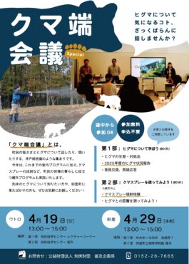 今年は、ヒグマの生態や対処法、2025年度の出没状況の解説に加え、クマスプレーの噴射体験など、暮らしに役立つ屋外プログラムも実施します。