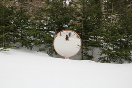 森も川も防鹿柵も雪の中、この雪がなくなるまではあとひと月と少しです。