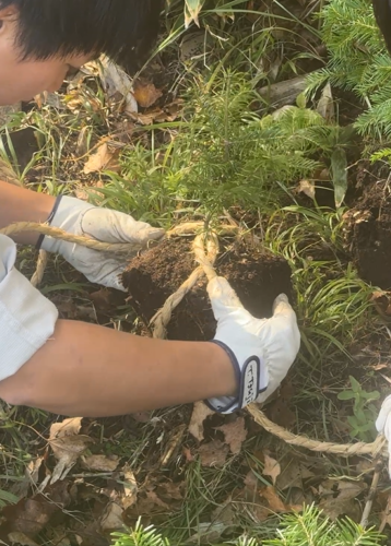 1本1本の苗を傷つけないよう慎重に掘り進める作業は、想像以上に大変で体力を使いましたが、人の力で知床の森づくりの基礎を支える大切な工程であることを実感しました。