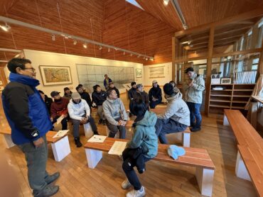 1日目は、「知床の自然を学ぶ」と題して、世界自然遺産・知床を深く学んでいただくためにレクチャーを実施しました。知床における陸海空の生態系の繋がりに始まり、かつての開拓の歴史やしれとこ100平方メートル運動についてお話ししました。