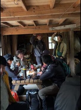 トレッキングの後は、開拓小屋でディスカッションをしていただきました。