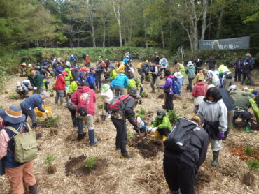 晴れわたる秋空の下、全国から130名の参加者が集い、131本のトドマツの苗木を植樹しました。