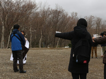第2部では、知床ディスタンスカードを使用し、ヒグマとの適正な距離を体感しました。参加者からは、「実際の50mってこんなに遠いの?」と驚きの声が挙がりました。