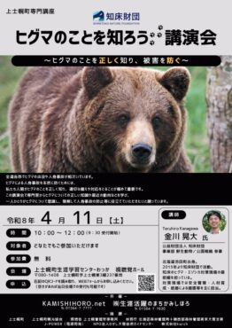 4月11日にKAMISHIHORO.net様が主催する上士幌町の講演会「ヒグマのことを知ろう」で、ヒグマの生態やヒグマと出遭わないための対策、万が一出遭ってしまった際の対処法などついてお話しさせていただきました。